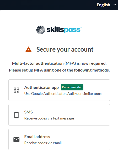 Multi-factor Authentication, or MFA is an added level of security to protect your information. when you create your account, you will be given three options for receiving an authentication code: Authenticator app (recommended), text, or email.